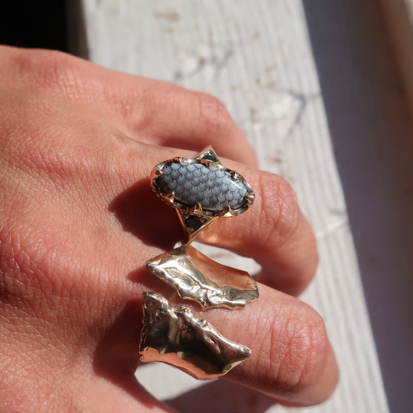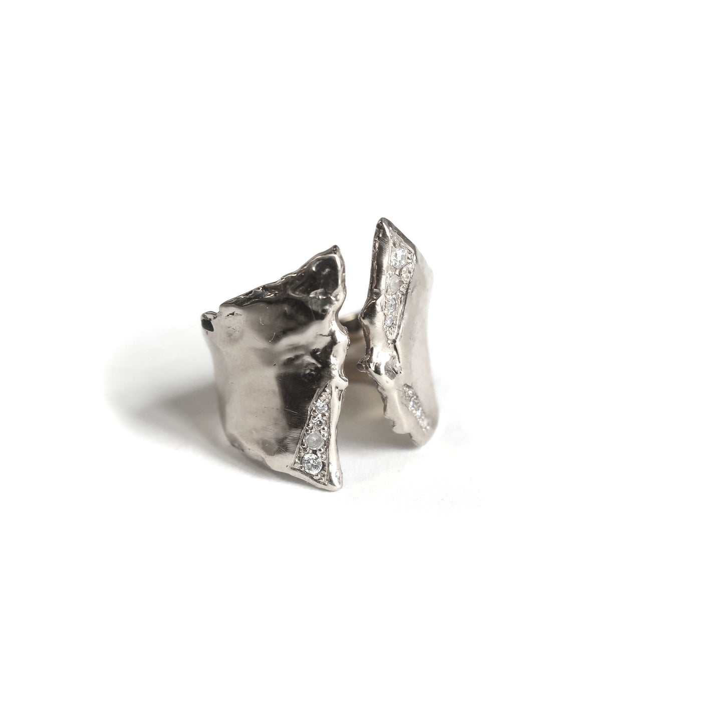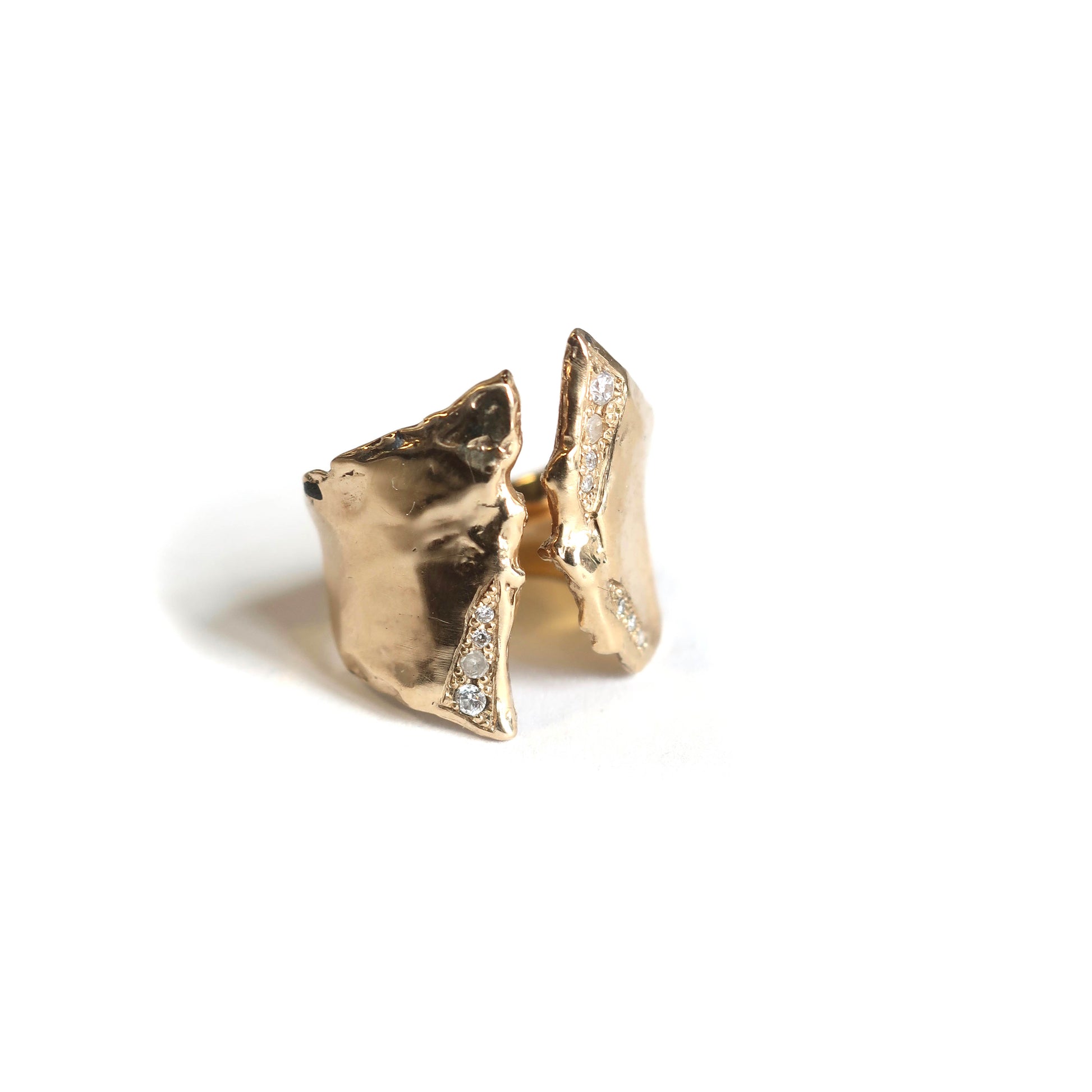 This new design takes our silver Trench ring up a notch in gorgeous white or yellow solid gold in a textured and high polish finish. The weight and fit this open ring has allows for slight flexibility creating a nice comfortable fit.