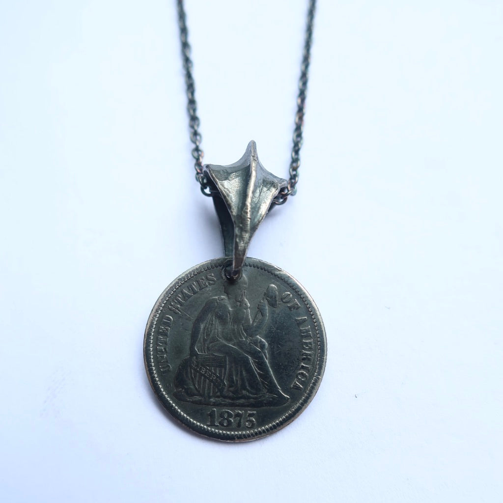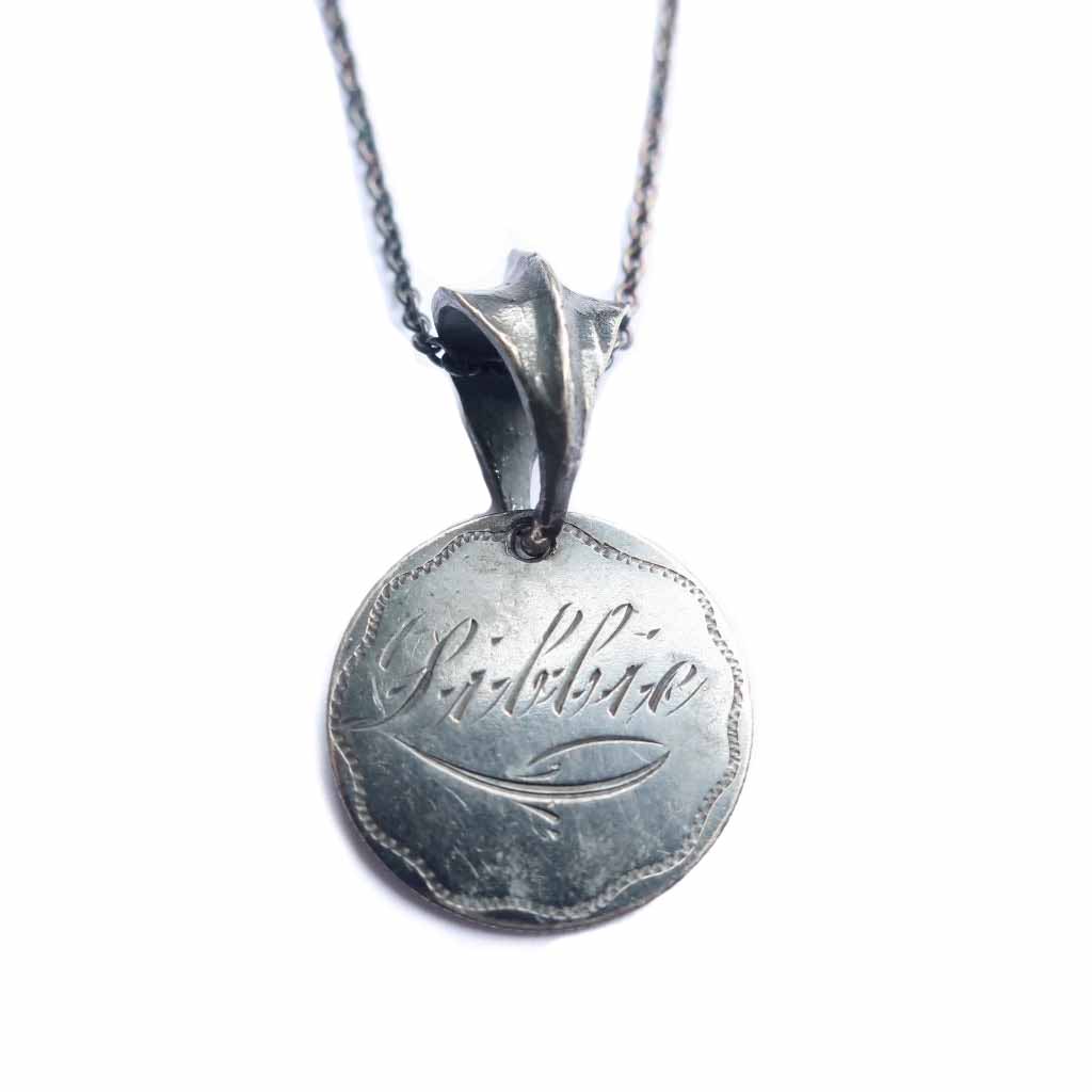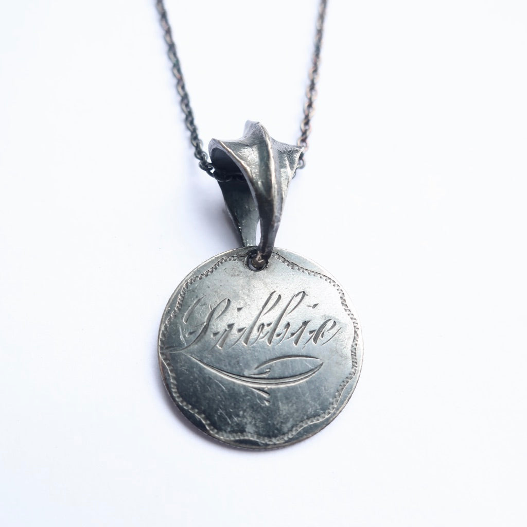 One Of a Kind Vintage coin with hand engraving in sterling silver with bail.