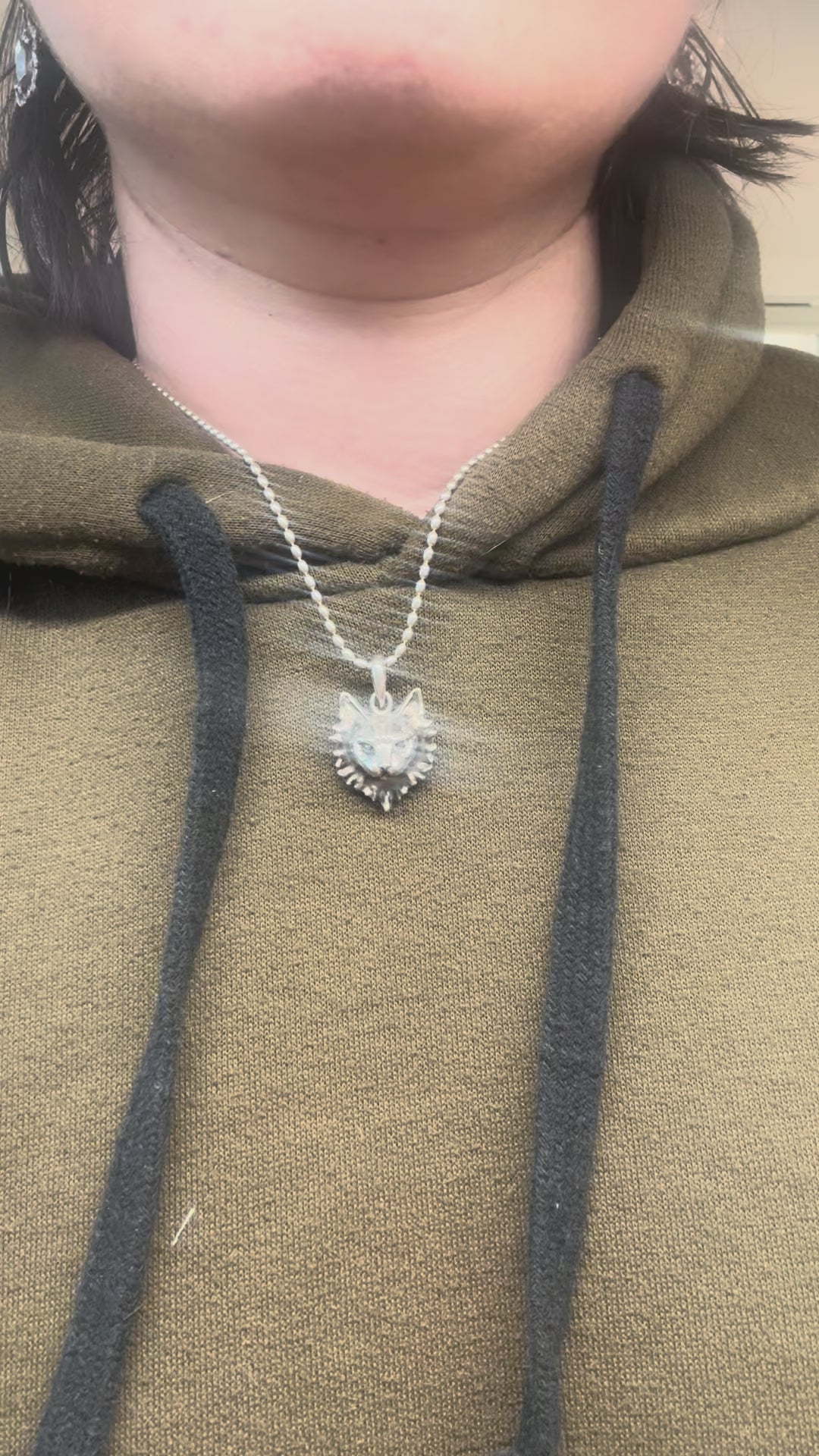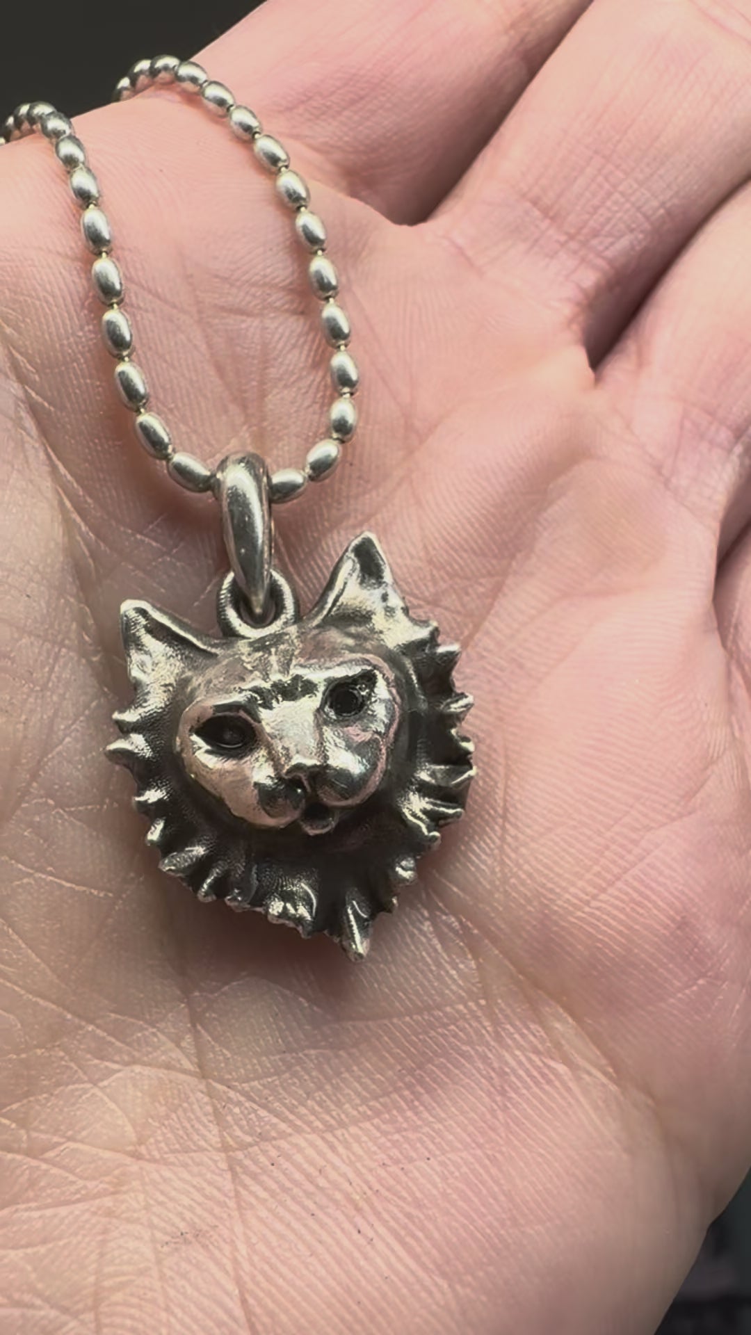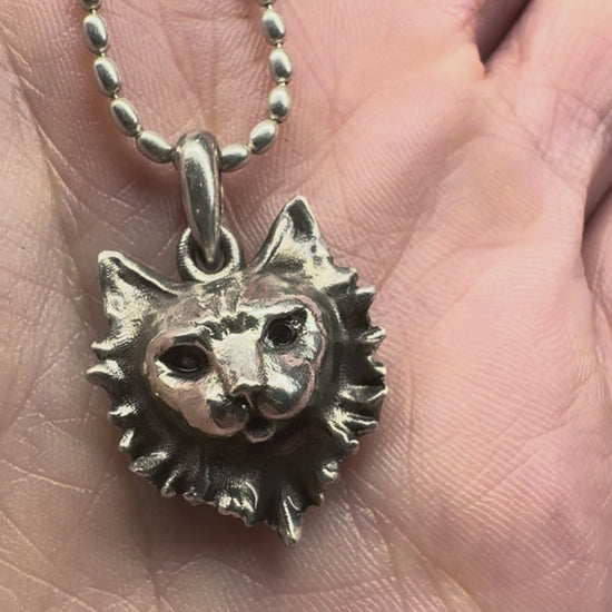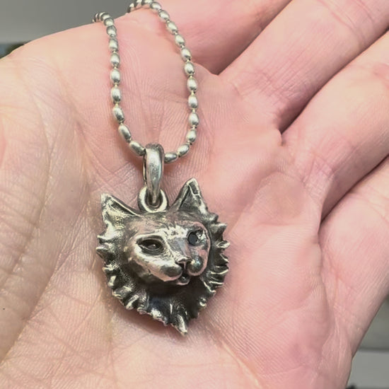 Solid sterling silver cat with bail. The piece show. Has one black diamond eye. Eyes can be customized on request.