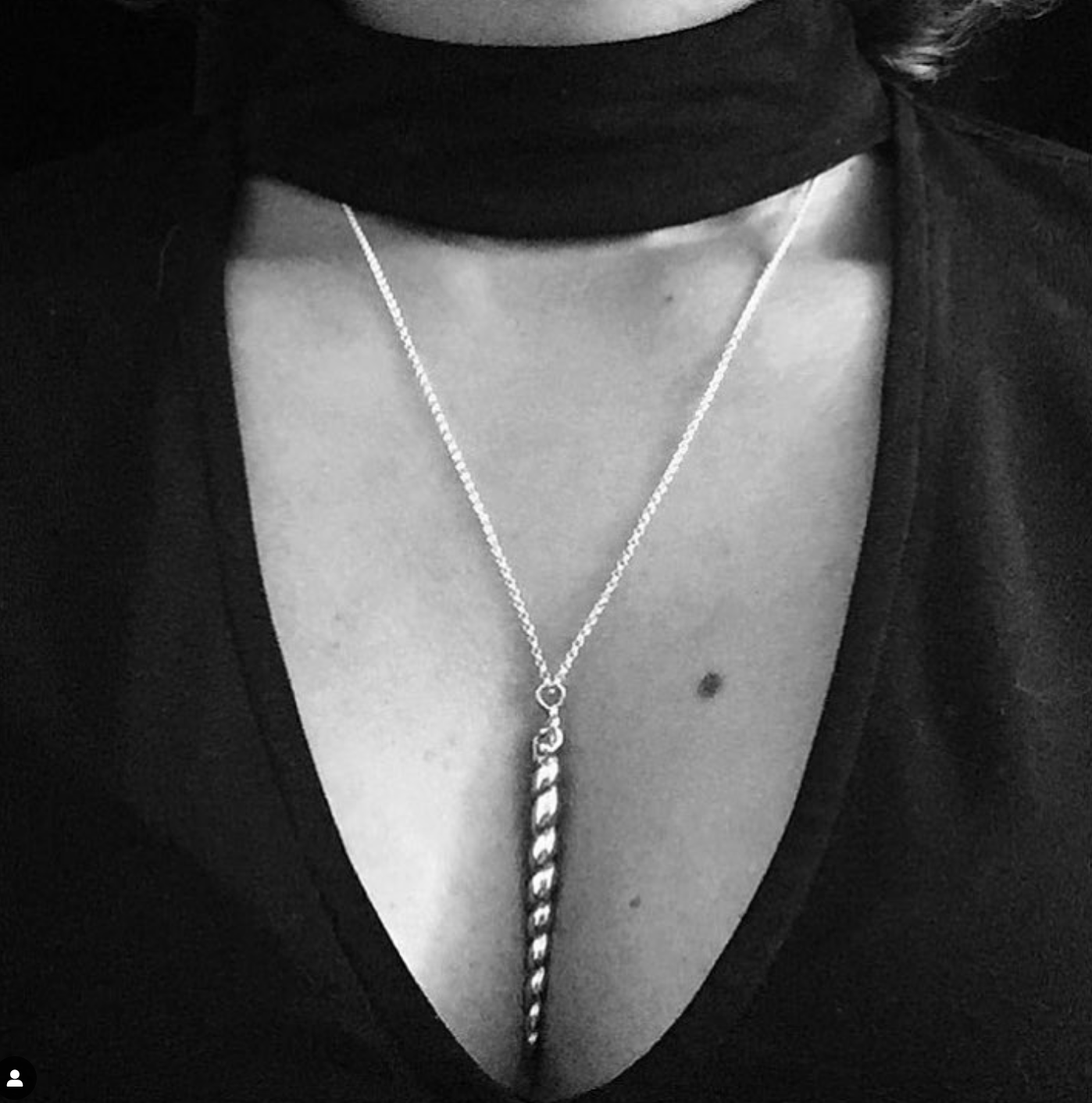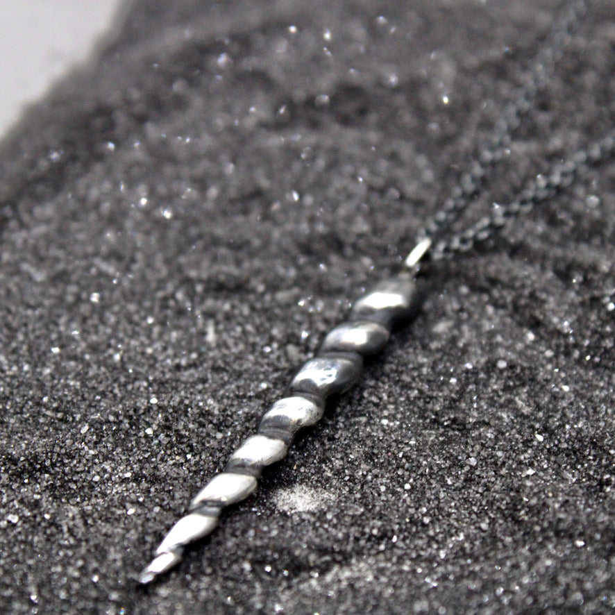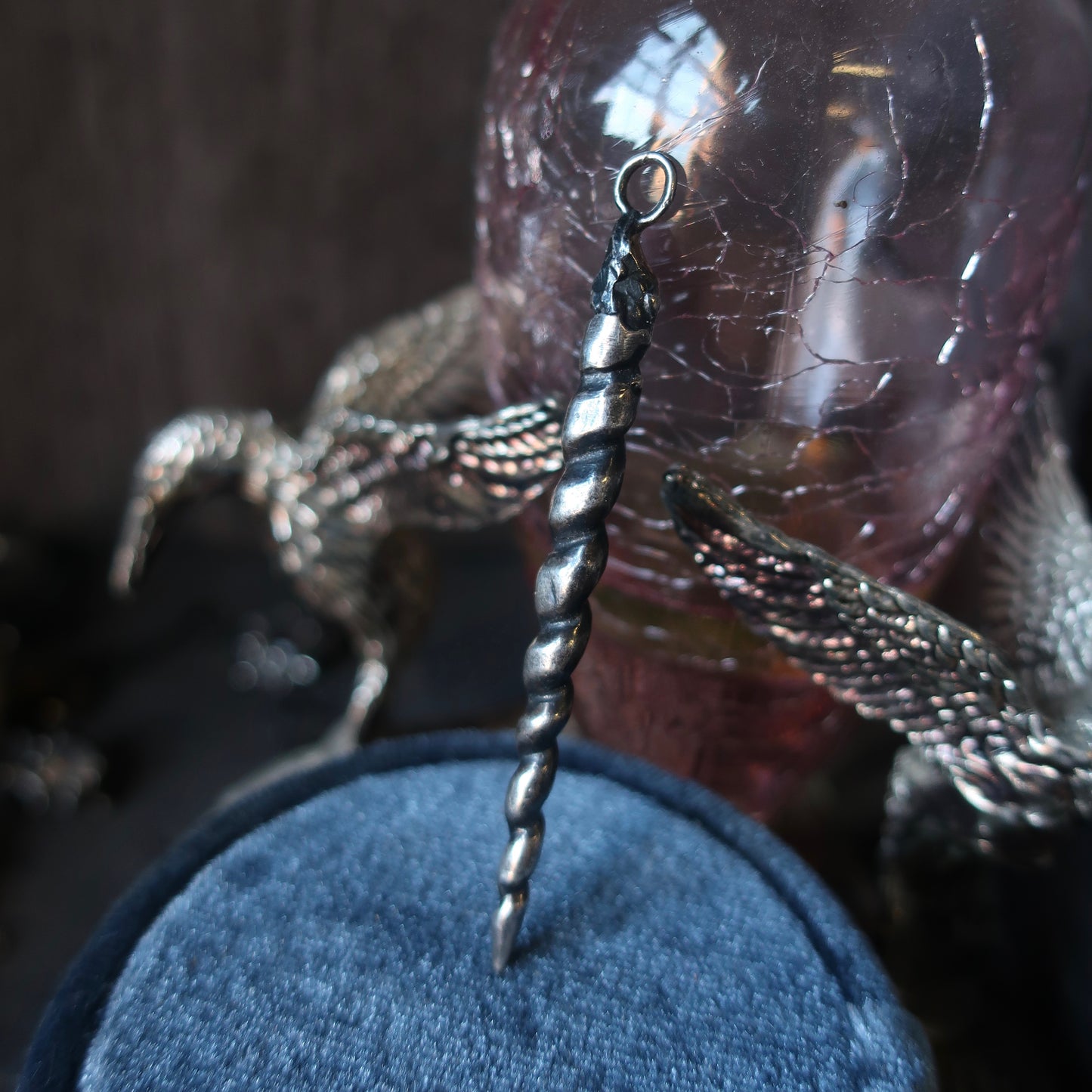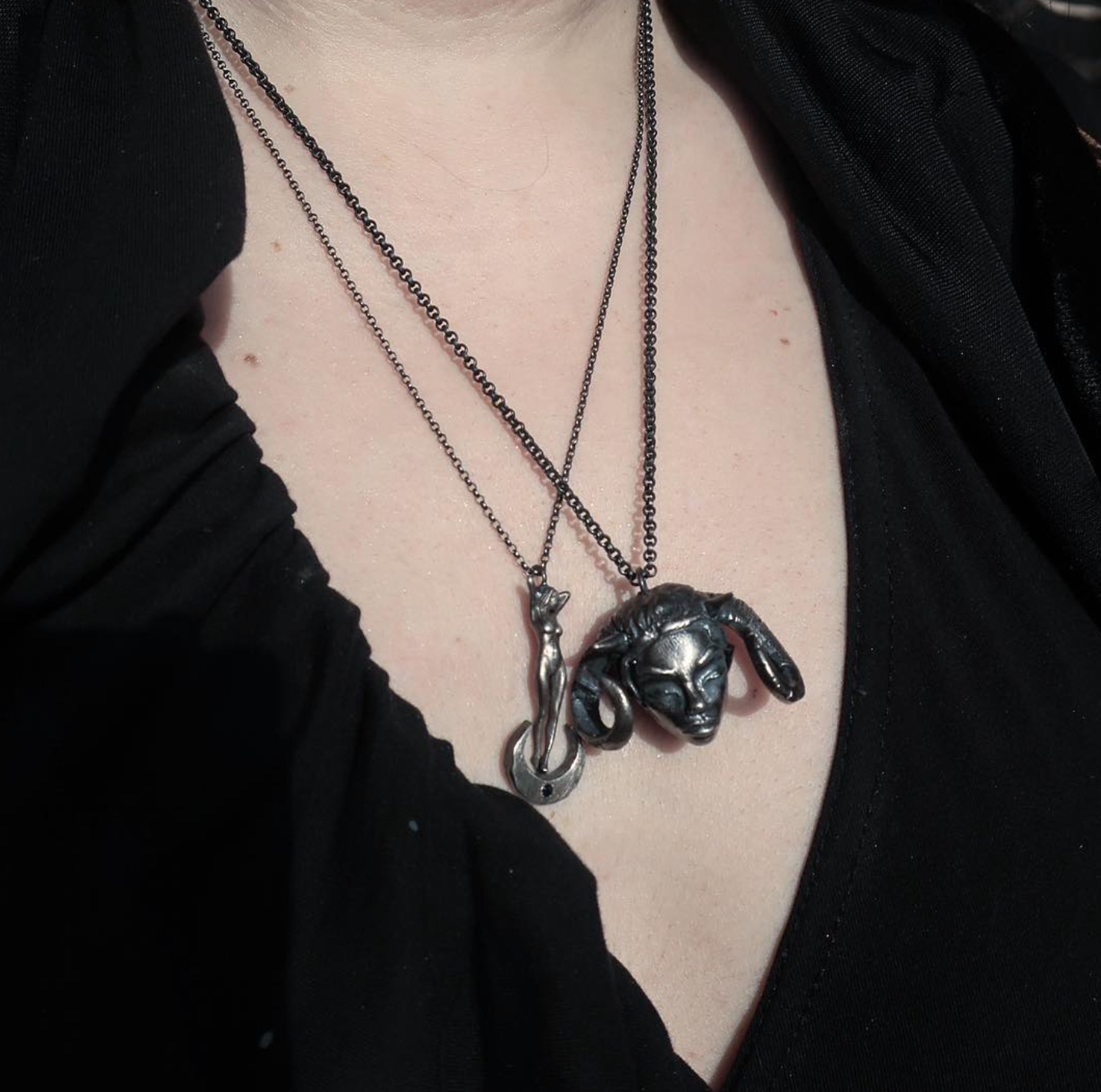 Measures about 2 inches on a 20 inch sterling chain, solid sterling silver casting.